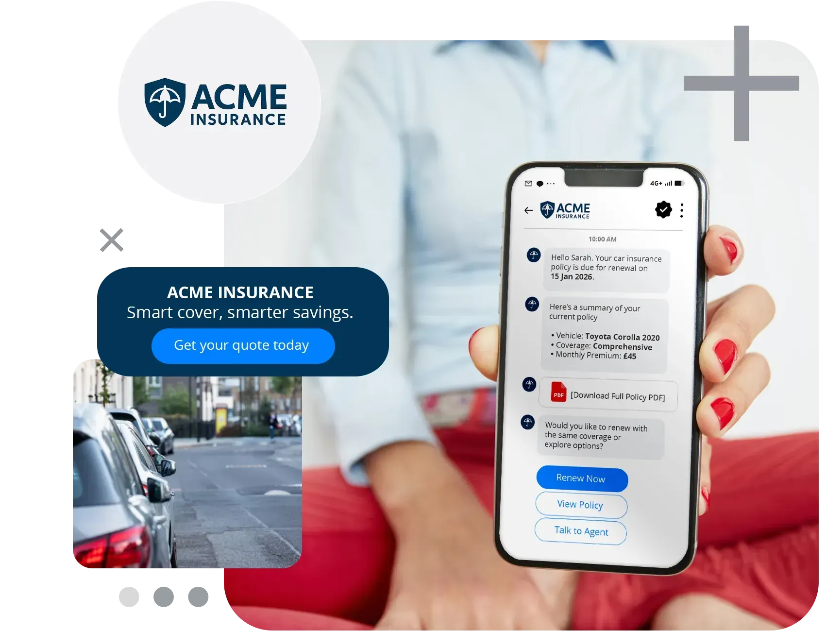 On‑brand, secure, and interactive messages sent directly to the place that matters most – your customers’ phones.